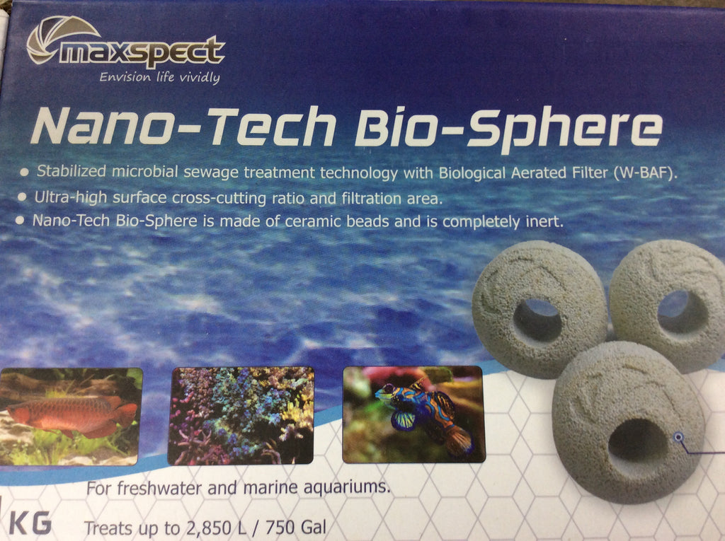 Maxspect’s Nano-Tech BioSpheres are a durable dense arrangement of smaller spheres creating an ultra-high surface area media which reduces the volume of